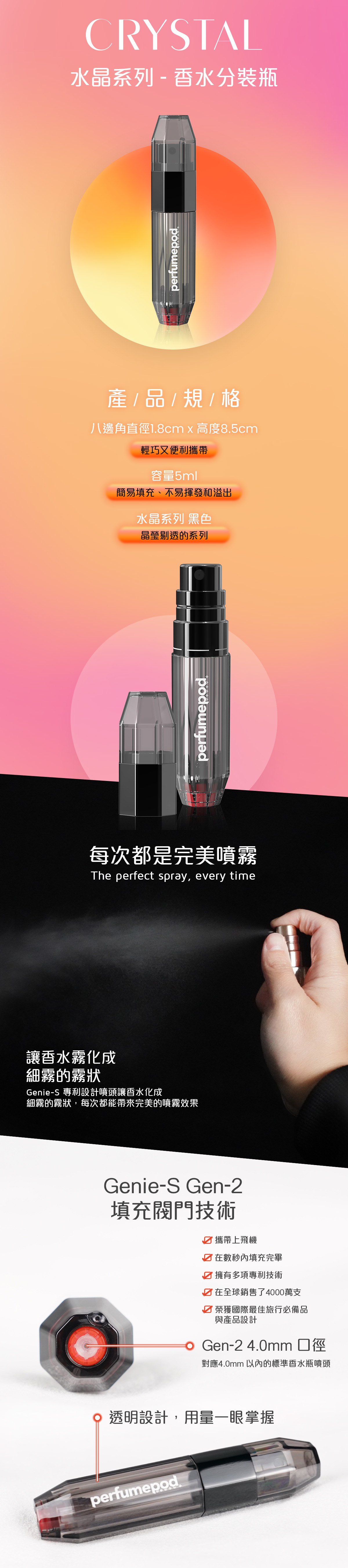 Perfume pod 能短時間內將香水從原裝瓶中轉移到完全密封防漏的噴霧器中