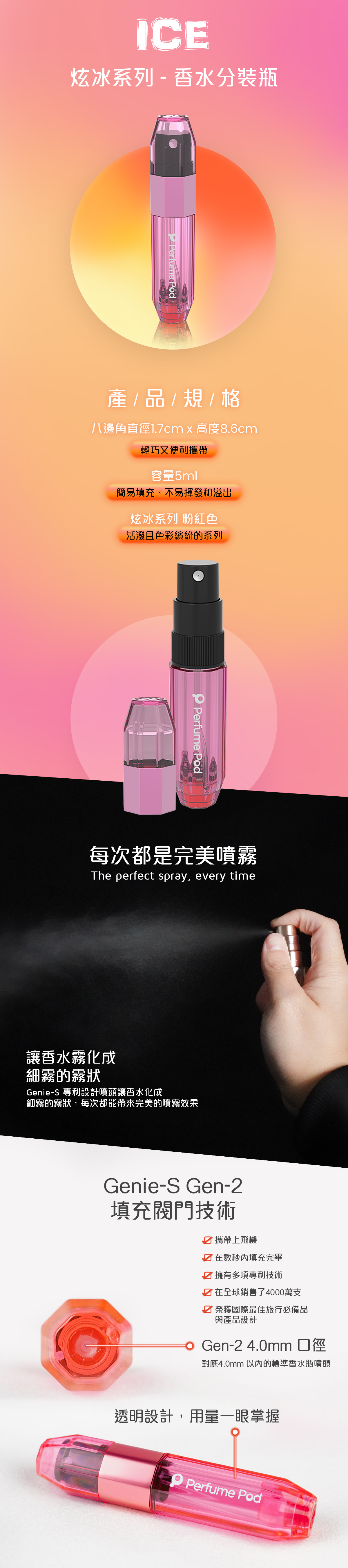 ICE系列粉紅色 香水分裝瓶 香水瓶 分裝瓶