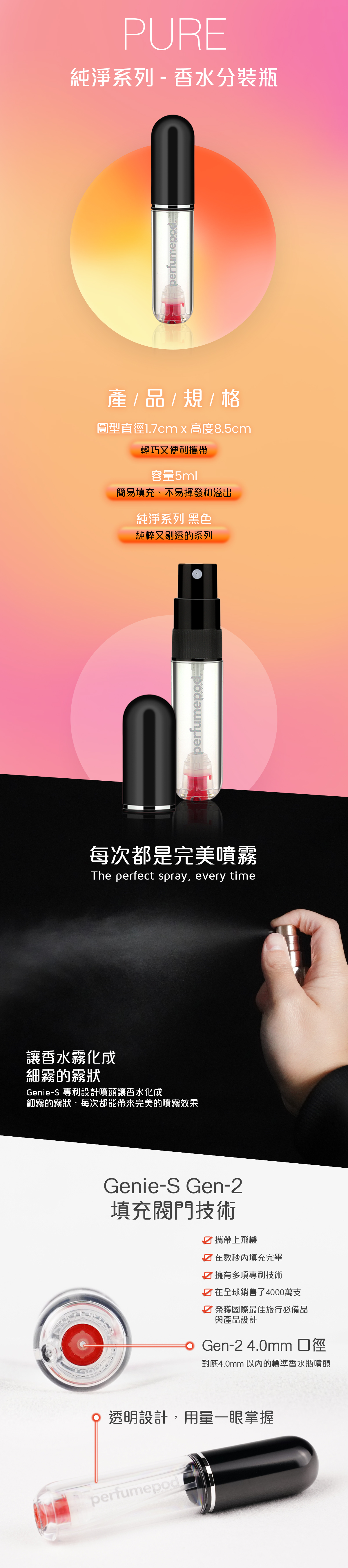 Perfume pod 能短時間內將香水從原裝瓶中轉移到完全密封防漏的噴霧器中