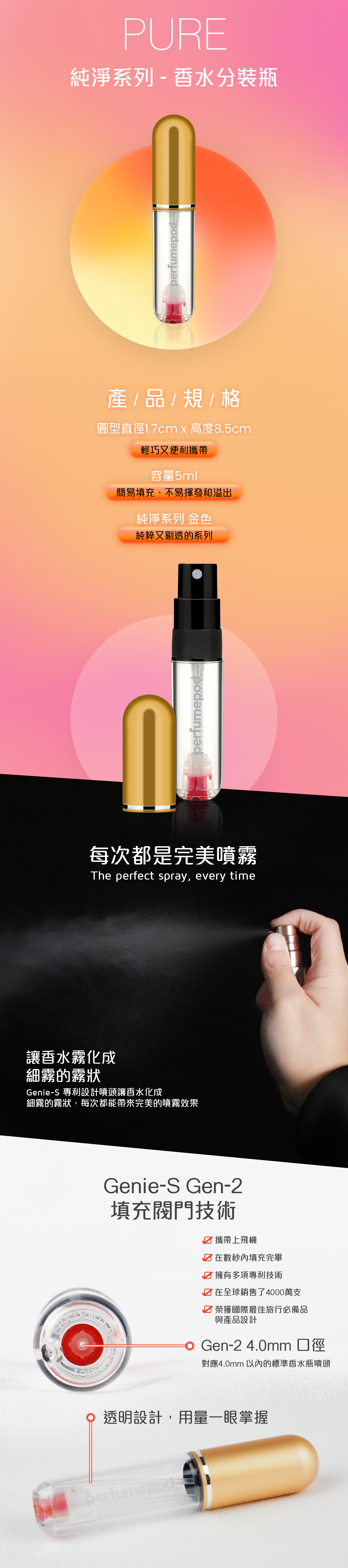 PURE系列金色 香水分裝瓶 香水瓶 分裝瓶