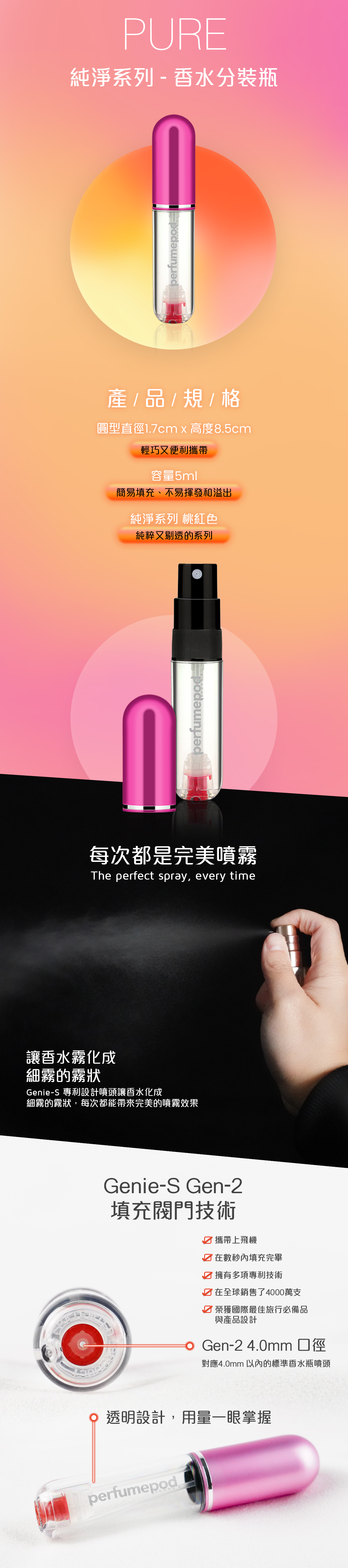 Perfume pod 能短時間內將香水從原裝瓶中轉移到完全密封防漏的噴霧器中