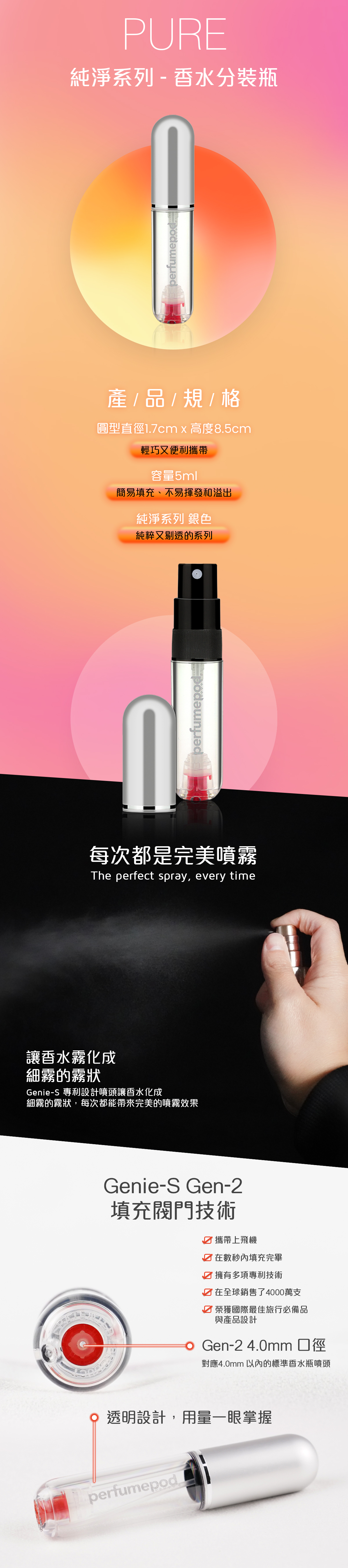 PURE系列銀色 香水分裝瓶 香水瓶 分裝瓶