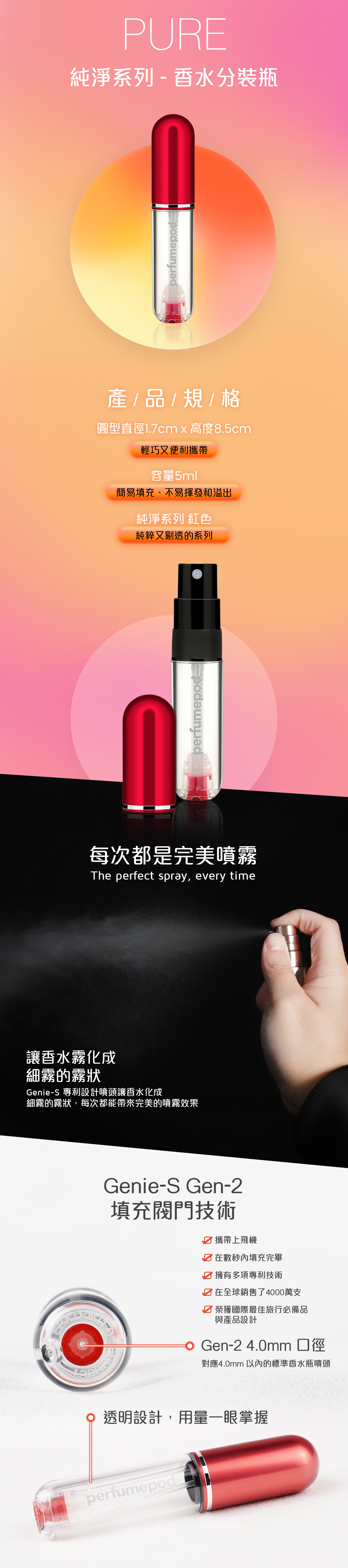 Perfume pod 能短時間內將香水從原裝瓶中轉移到完全密封防漏的噴霧器中