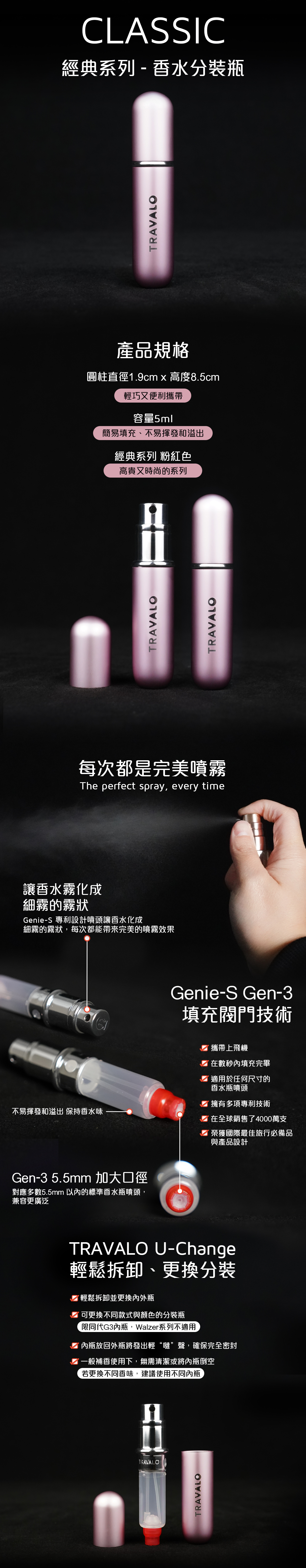 Travalo 能短時間內將香水從原裝瓶中轉移到完全密封防漏的噴霧器中