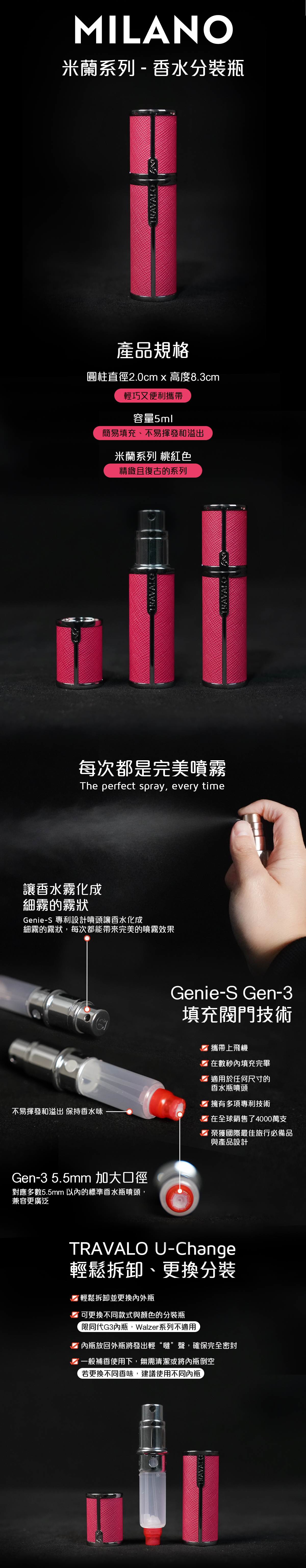 Travalo 能短時間內將香水從原裝瓶中轉移到完全密封防漏的噴霧器中