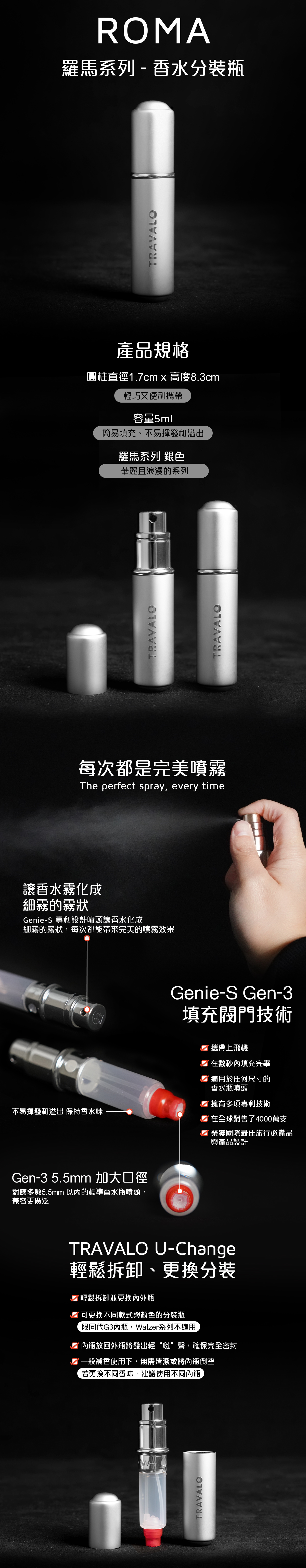 Travalo 能短時間內將香水從原裝瓶中轉移到完全密封防漏的噴霧器中