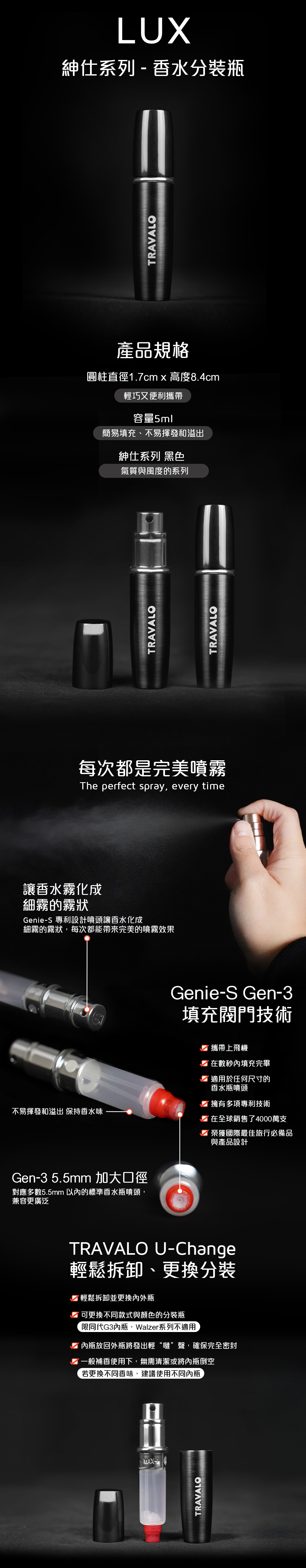 Travalo 能短時間內將香水從原裝瓶中轉移到完全密封防漏的噴霧器中