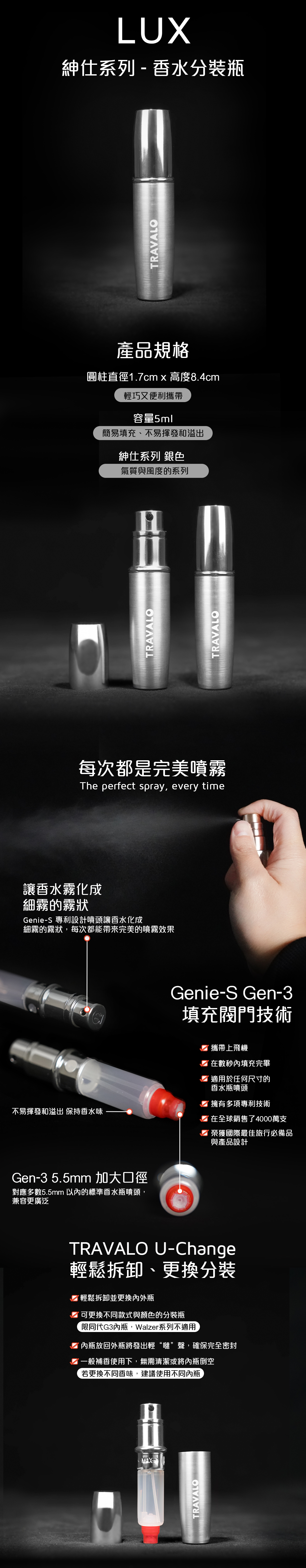 Travalo 能短時間內將香水從原裝瓶中轉移到完全密封防漏的噴霧器中
