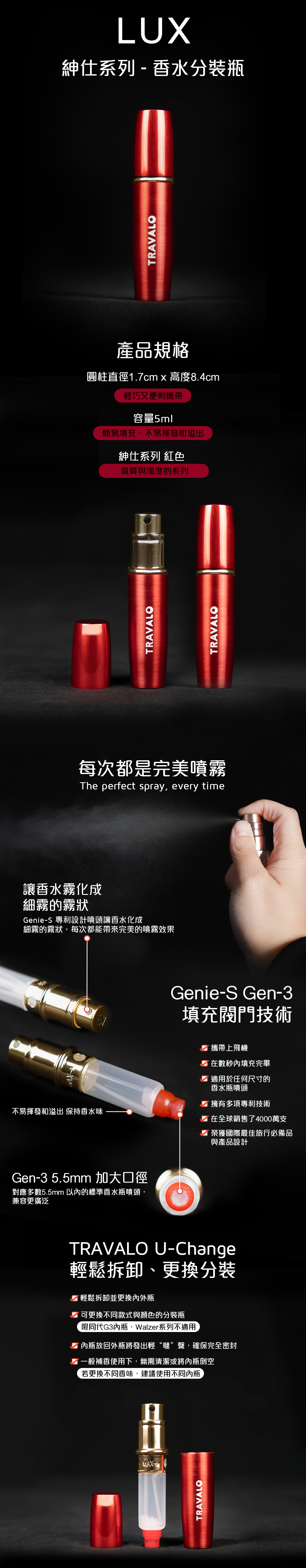 LUX系列紅色 香水分裝瓶 香水瓶 分裝瓶