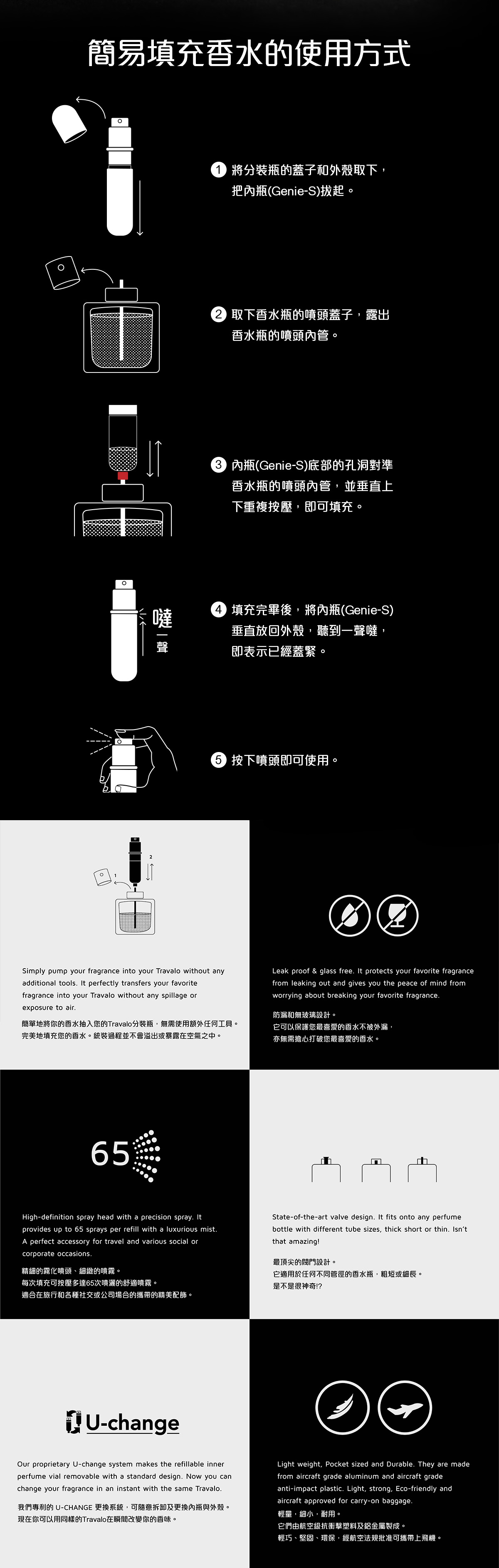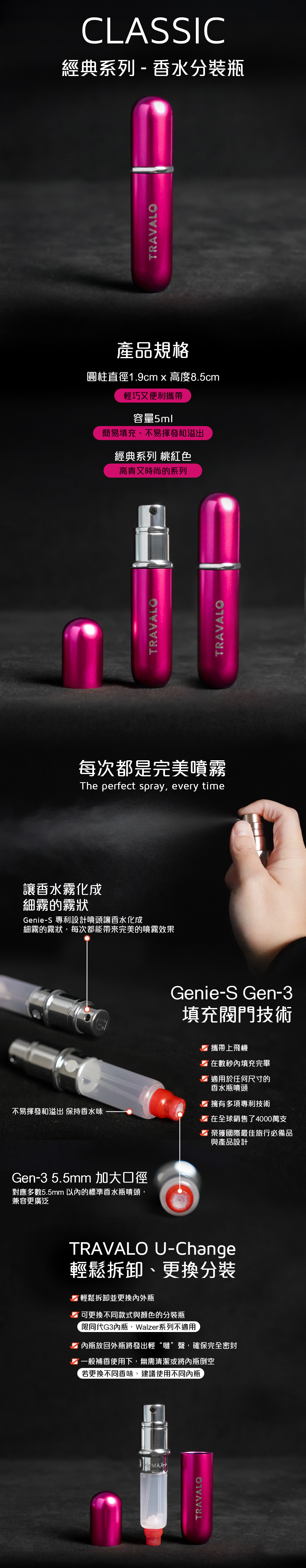 Travalo 能短時間內將香水從原裝瓶中轉移到完全密封防漏的噴霧器中
