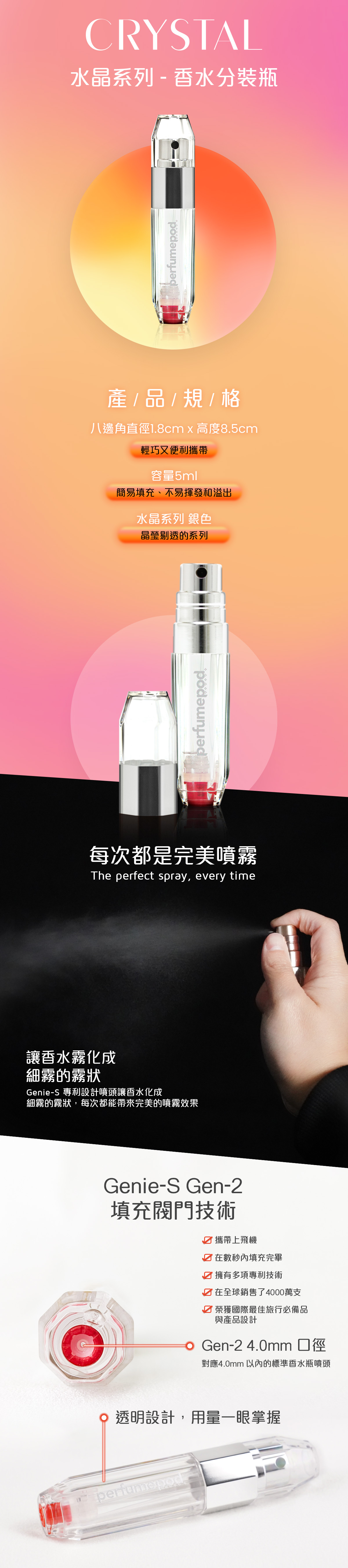 Perfume pod 能短時間內將香水從原裝瓶中轉移到完全密封防漏的噴霧器中