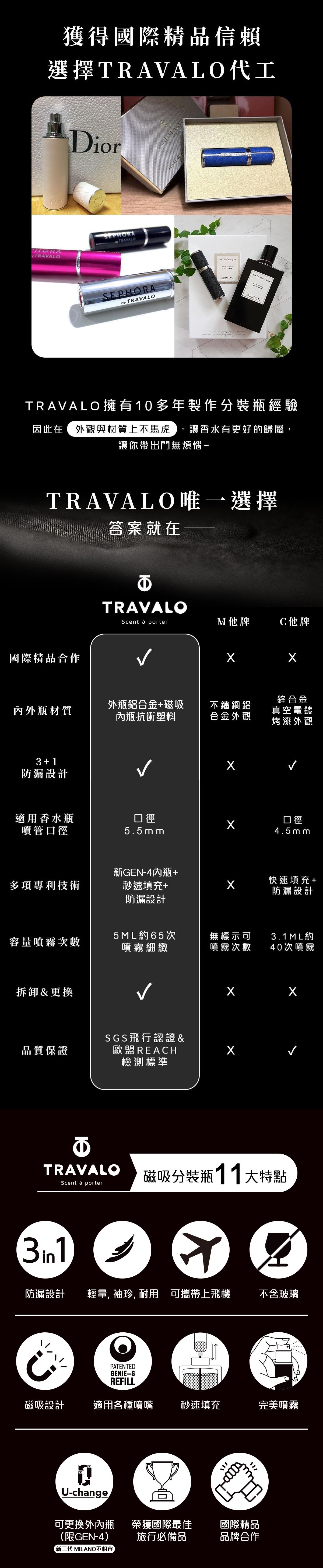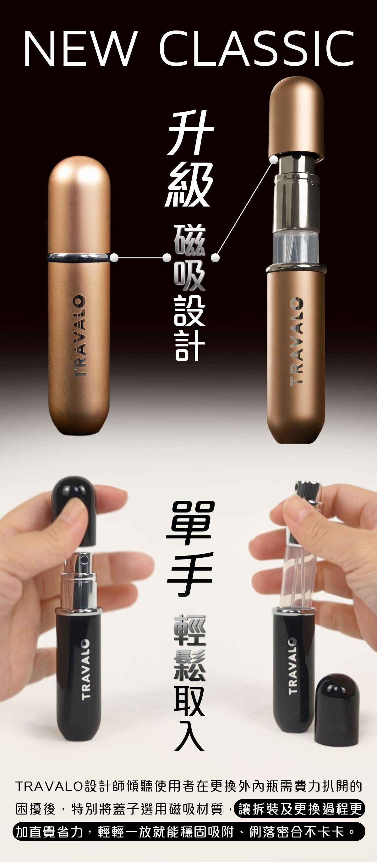 Travalo 能短時間內將香水從原裝瓶中轉移到完全密封防漏的噴霧器中