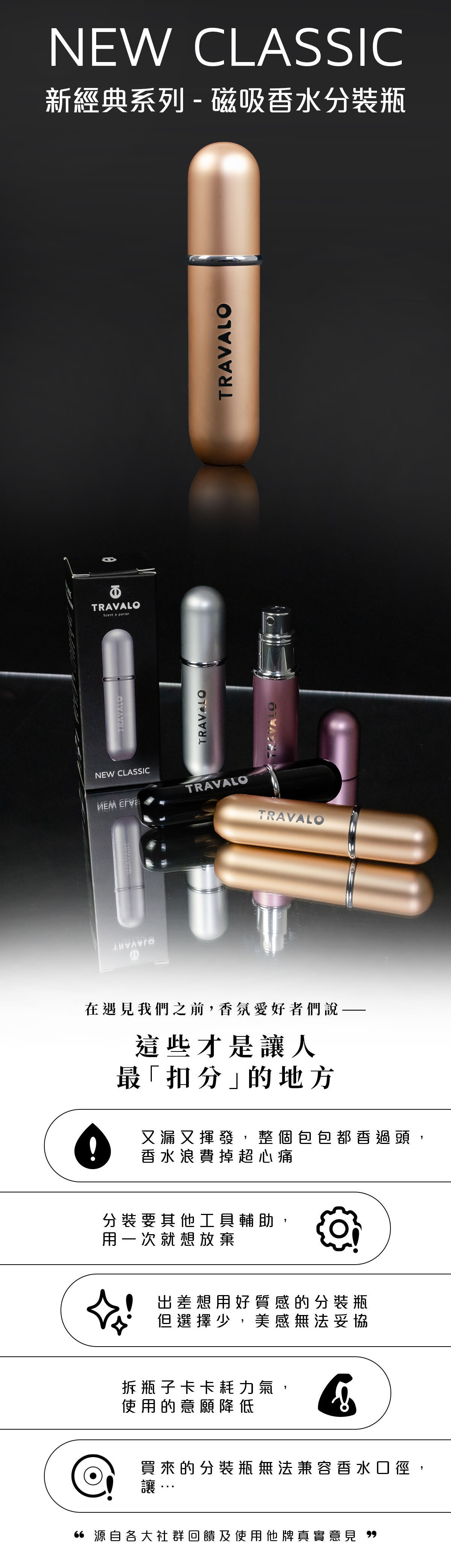 Travalo 能短時間內將香水從原裝瓶中轉移到完全密封防漏的噴霧器中